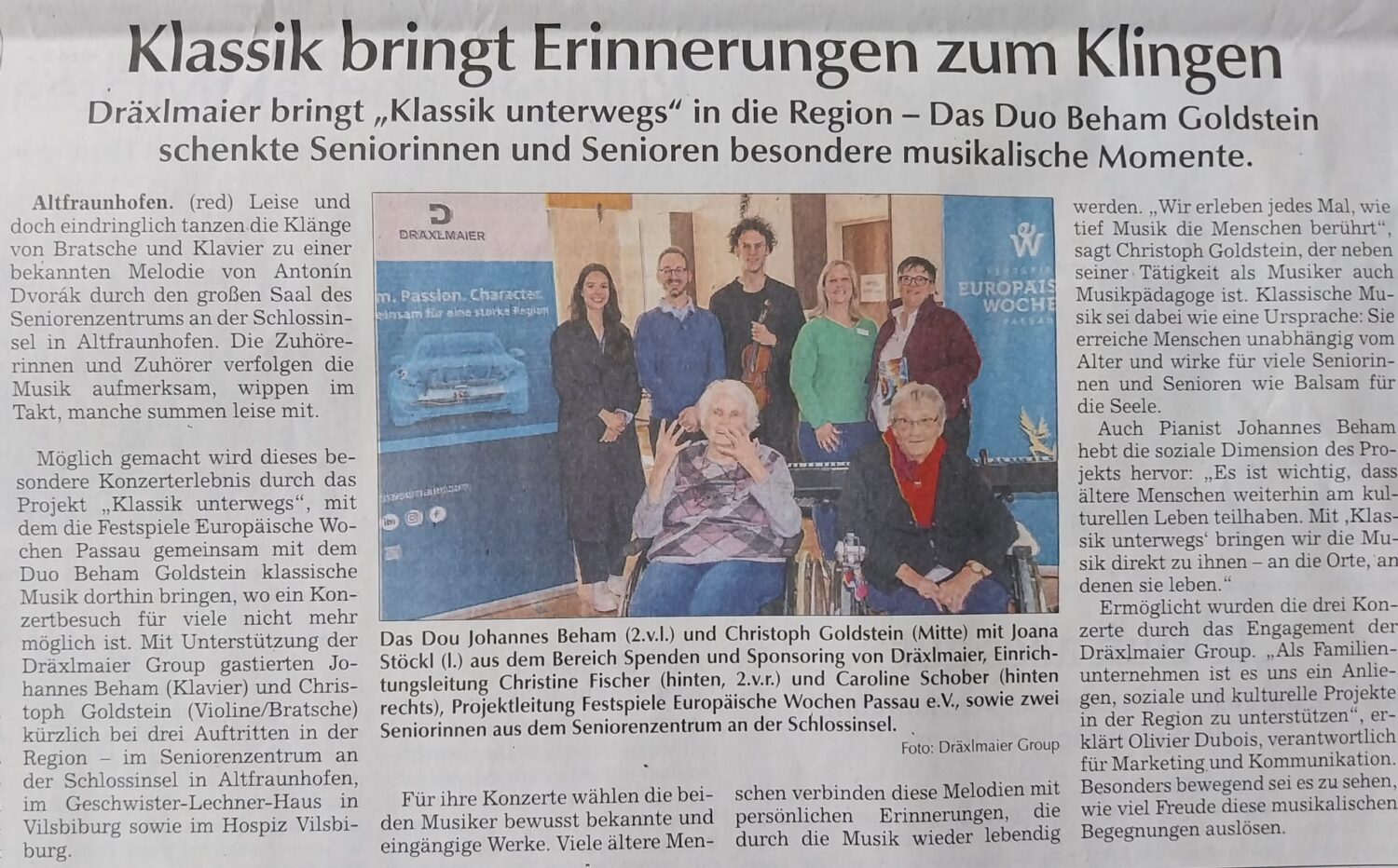 „Beham und Goldstein sind beide Virtuosen auf ihren Instrumenten und verstehen sich blind. Wer diesem Zusammenspiel lauscht, der fühlt: diese beiden Musiker haben eine besondere Verbindung zueinander gefunden.“
